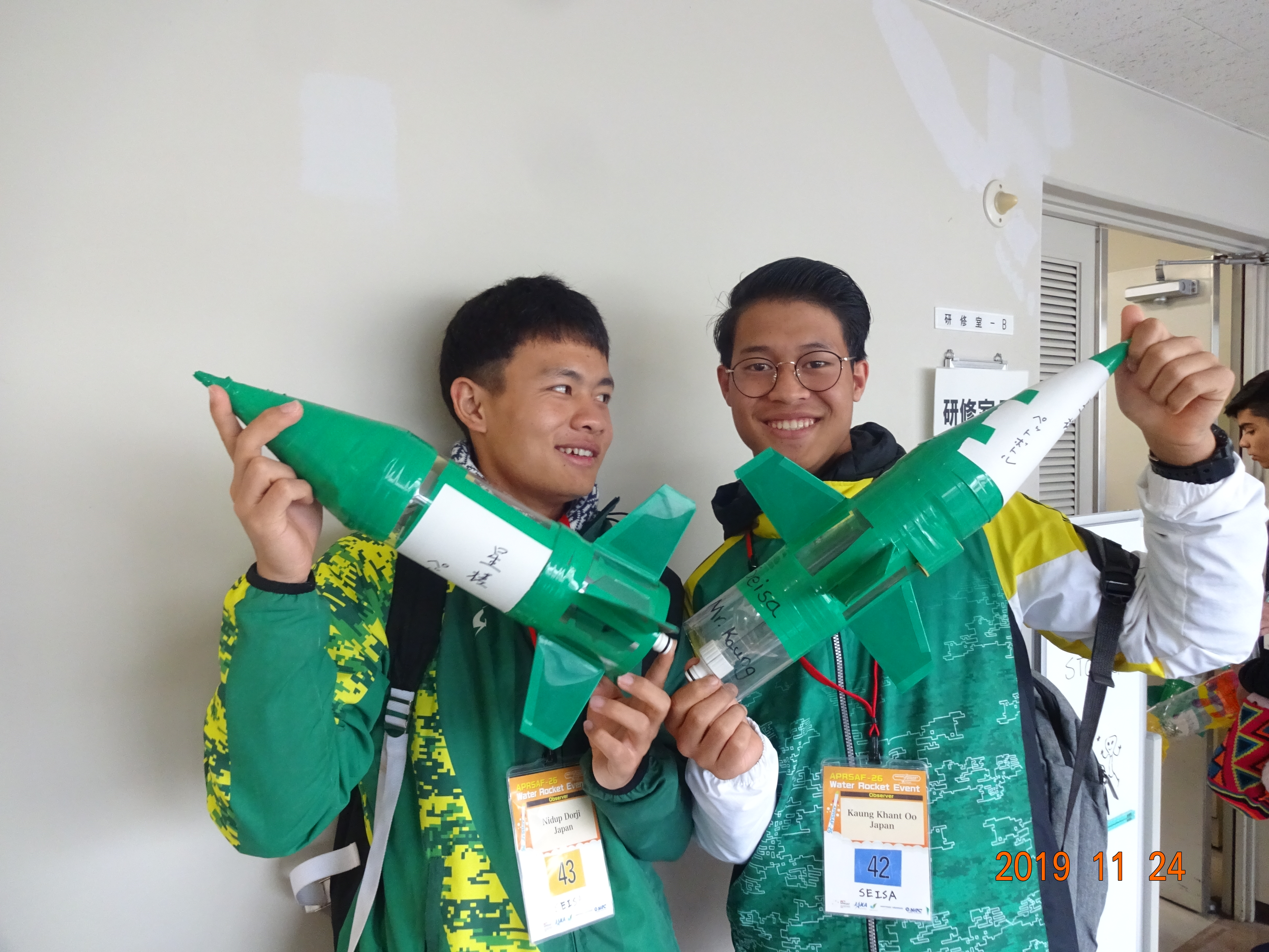 星槎国際湘南に通うブータン人留学生ニダップ君とミャンマー人留学生カウン君が、11月23日、24日に実施されたJAXA(宇宙航空研究開発機構)主催の水ロケット大会に参加してきました。この大会に参加するにあたり、星槎大学客員教授である文沢先生や一般社団法人スペースウェザー協会上泉先生ご指導の元、事前学習を行い、試行錯誤を重ね本番に臨みました。各国から大会参加者が集う中、大変素晴らしい結果を残すことができました。