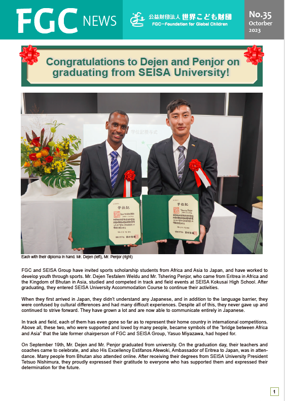 - Bhutan Exchange program with Royal Thimphu College. Support high school students to study in Japan. Provide medical supports. We support Bhutan to participate in 2020 Tokyo Olympic and Paralympic Games.
