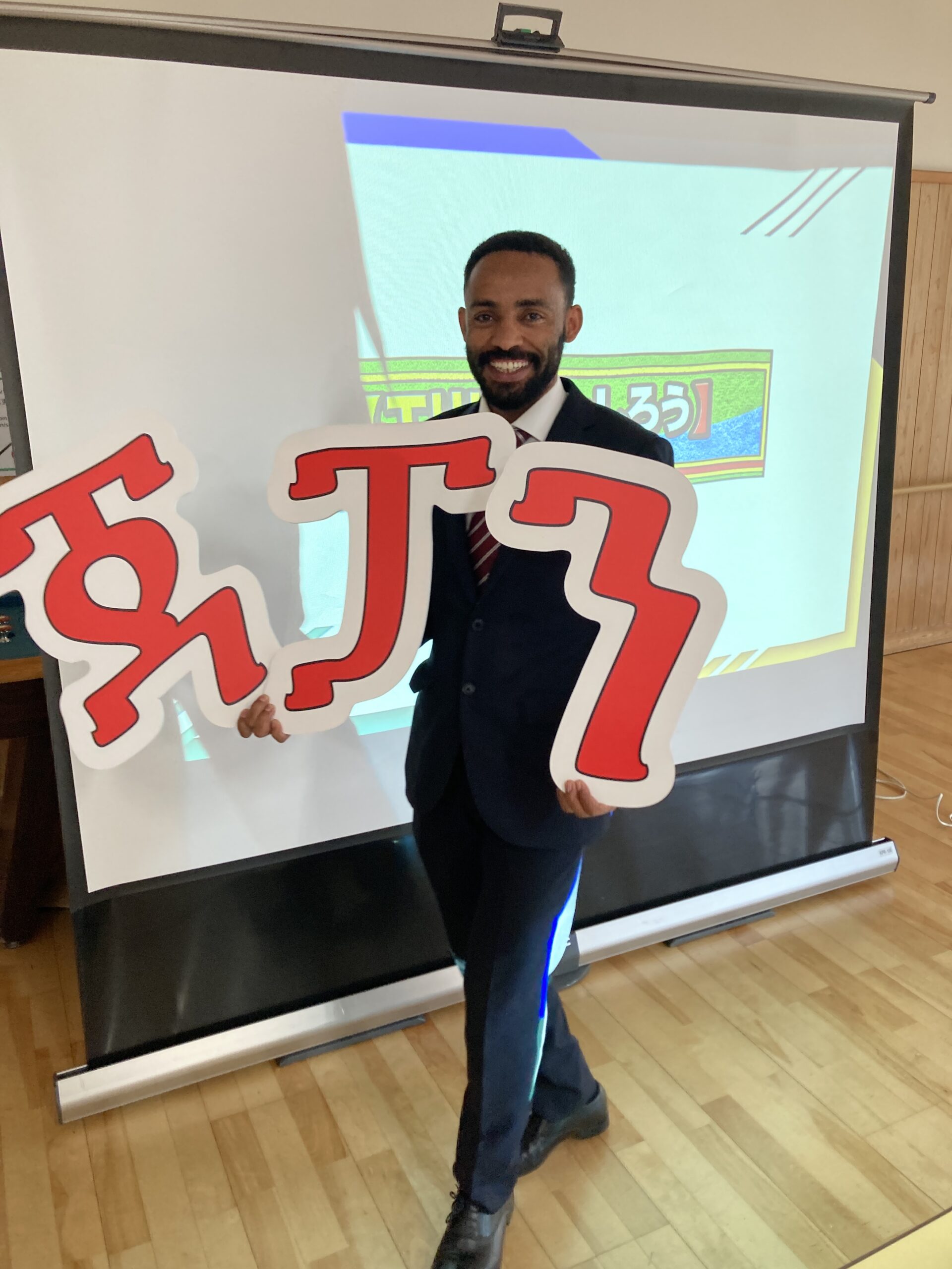 30名以上のこどもたちが参加してくれ、特に盛り上がったのはエリトリアの言葉であるティグリニャ語のアルファベットを使ったゲームでした。エリトリア大使館のご協力でアルファベットを大きなパネルにしていただき、子どもたちが「エリトリア」「ジャパン」「平和」という言葉を並べ替えるゲームを行いました。