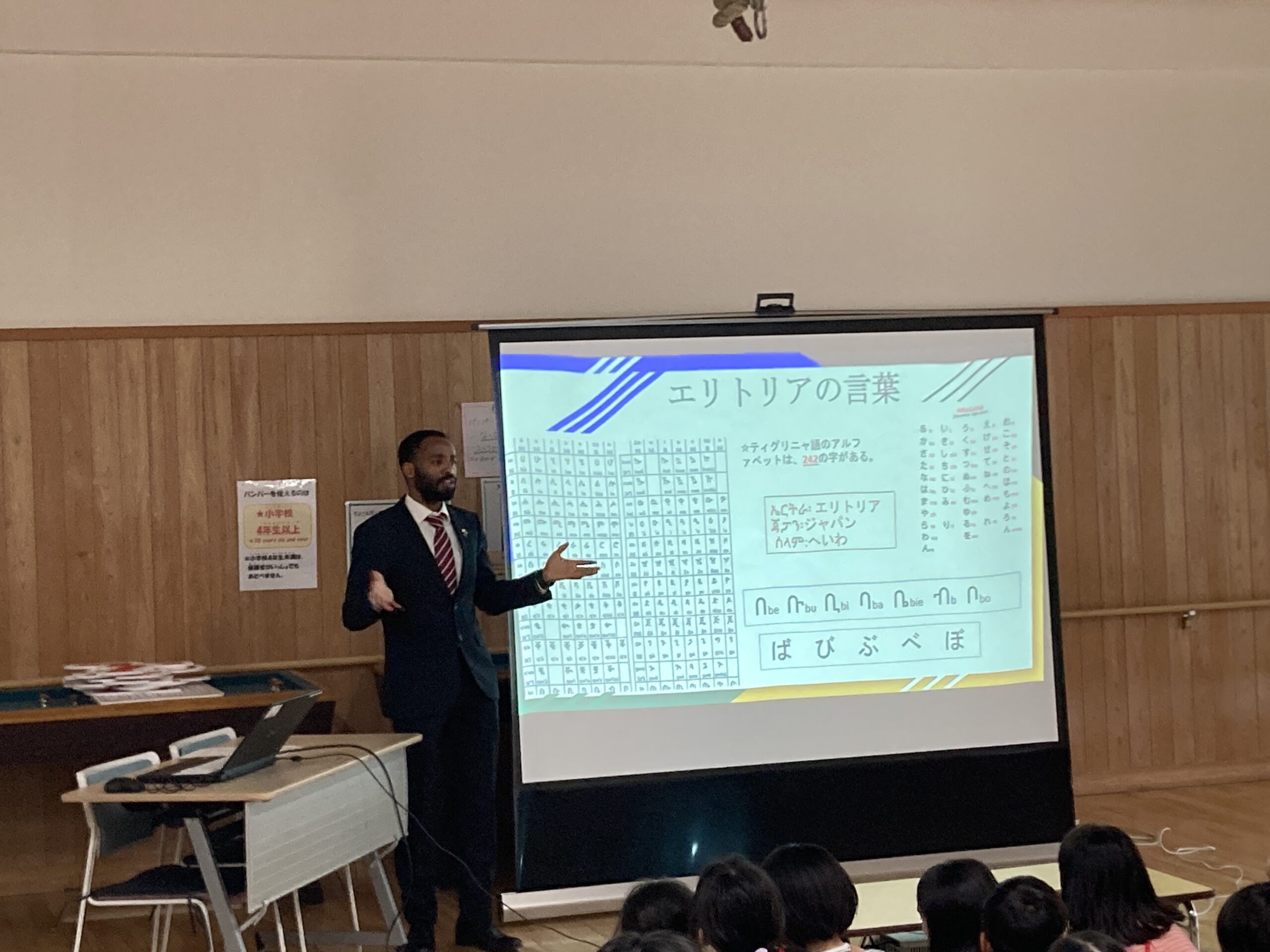 世界こども財団のエリトリア人職員ケセテは、これまでも駐日エリトリア国大使館より依頼を受け、都内の小学校で国際理解教育の出張授業を担当してきました。