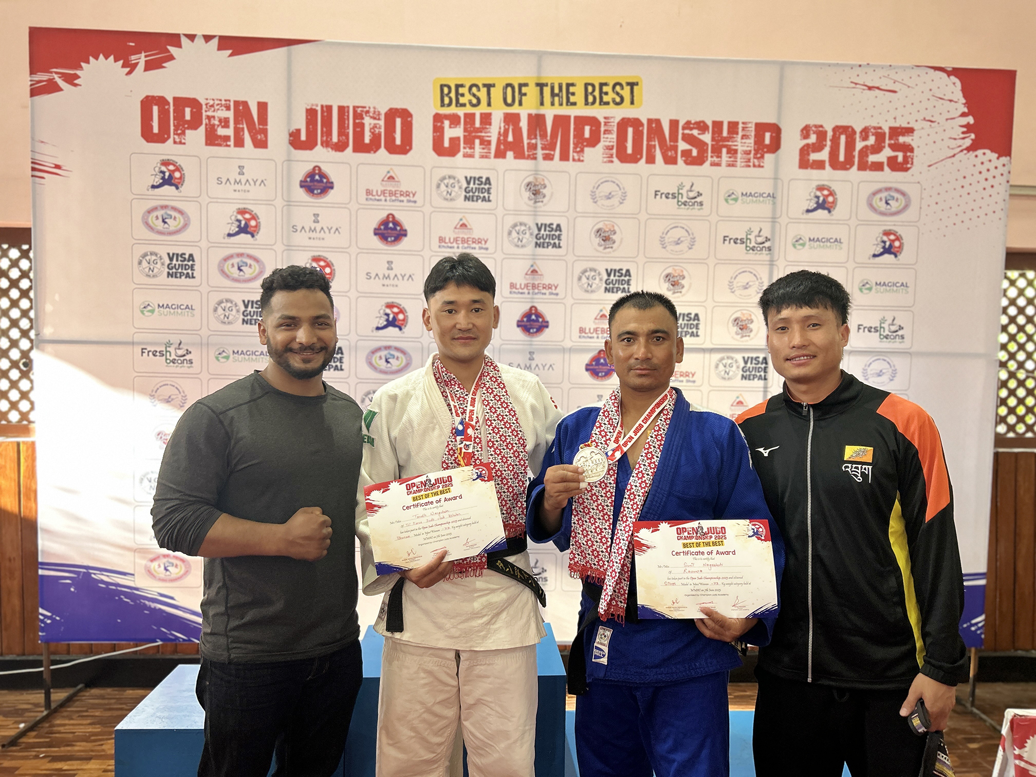 タンディン氏は、ブータンオリンピック委員会のエリート選手育成プログラム「BEAST」からの引退後、若手育成に尽力。現在は同級生と共に「Tri Force Judo Club」を運営し、未来の柔道家たちの育成環境づくりに取り組んでいます。それでも今回は、自らの限界に挑み、国際的な柔道の潮流を肌で感じるため、ネパール遠征を決意。10kgの減量と、32時間におよぶ陸路移動という過酷な準備を乗り越え、旧友であるガワン・ナムゲル氏、キンレイ・ツェリン氏、ビカシュ・タマン氏らともに、技術と戦術を徹底的に磨き上げました。